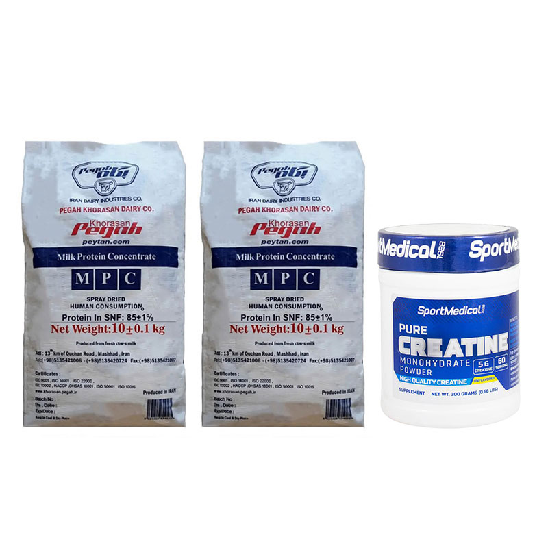 پک حجم خشک شامل : دو بسته یک کیلویی mpi + یک بسته 300 گرمی کراتین اسپورت مدیکال